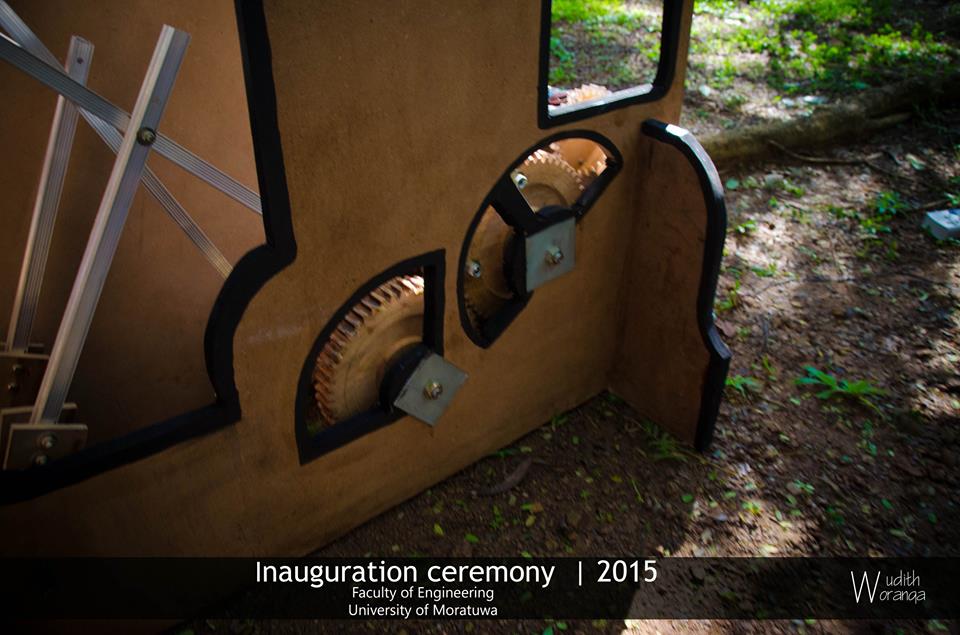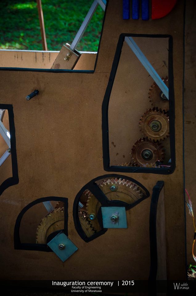 This is an animated mechanical real size human figure designed based on a gear mechanism. This was a Exhibit at the 2015 inauguration ceremony of University of Moratuwa.