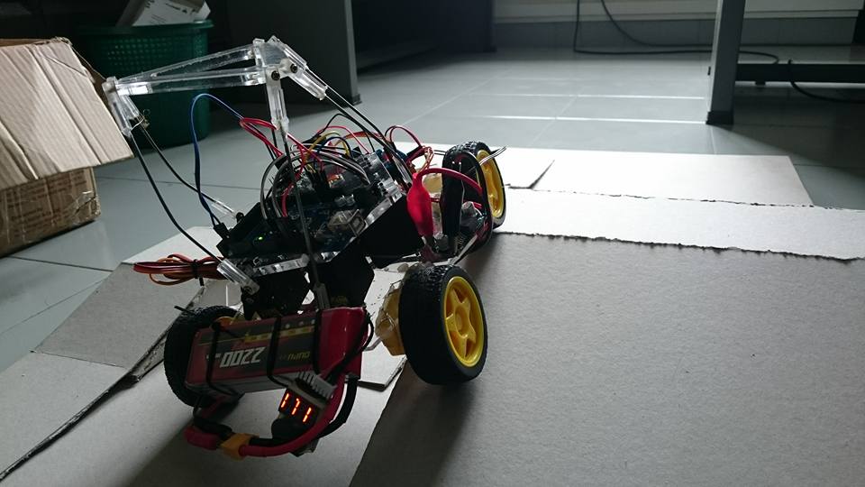 This 6 DOF mobile Stewart platform was developed as a course requirement of Semester 3 Mechatronics module. It has the capability to balance and stabilize in 6 DOFs and the Bluetooth control. This was awarded as the best project of the department of Mechanical Engineering.